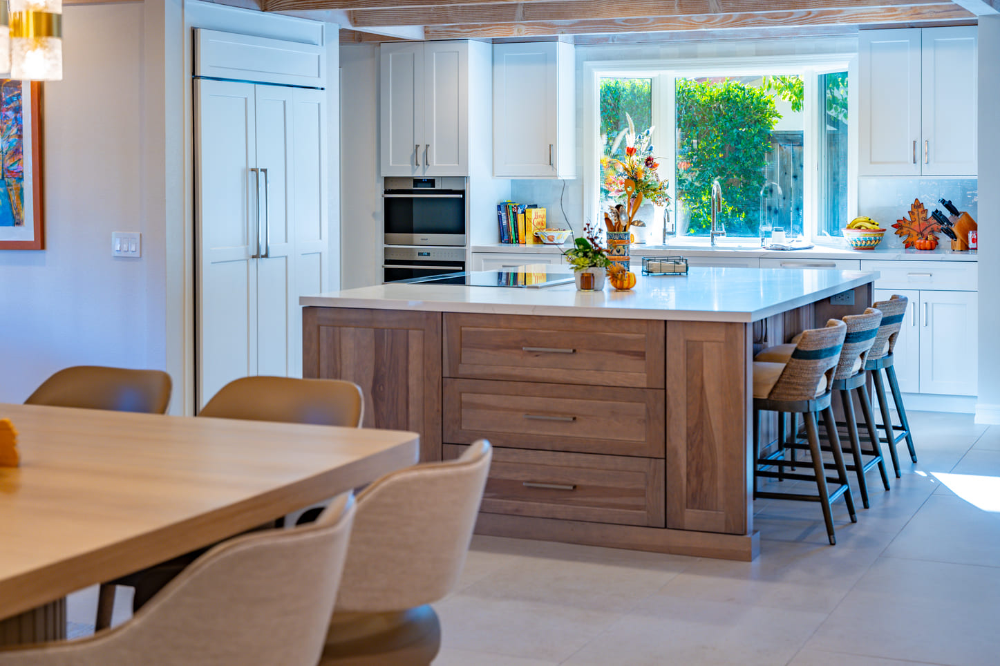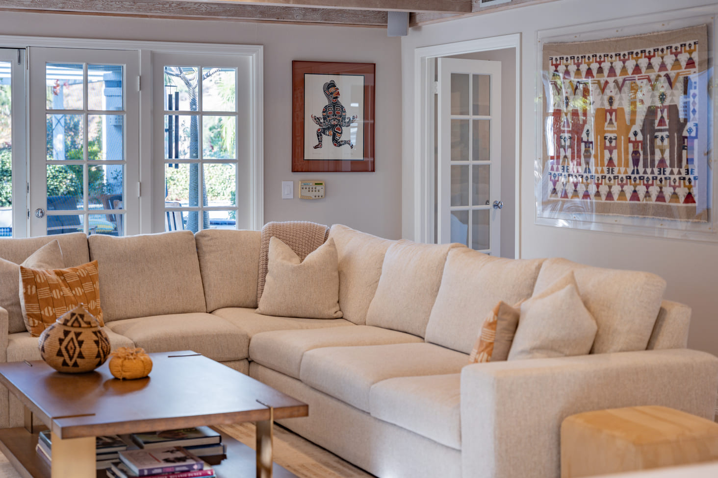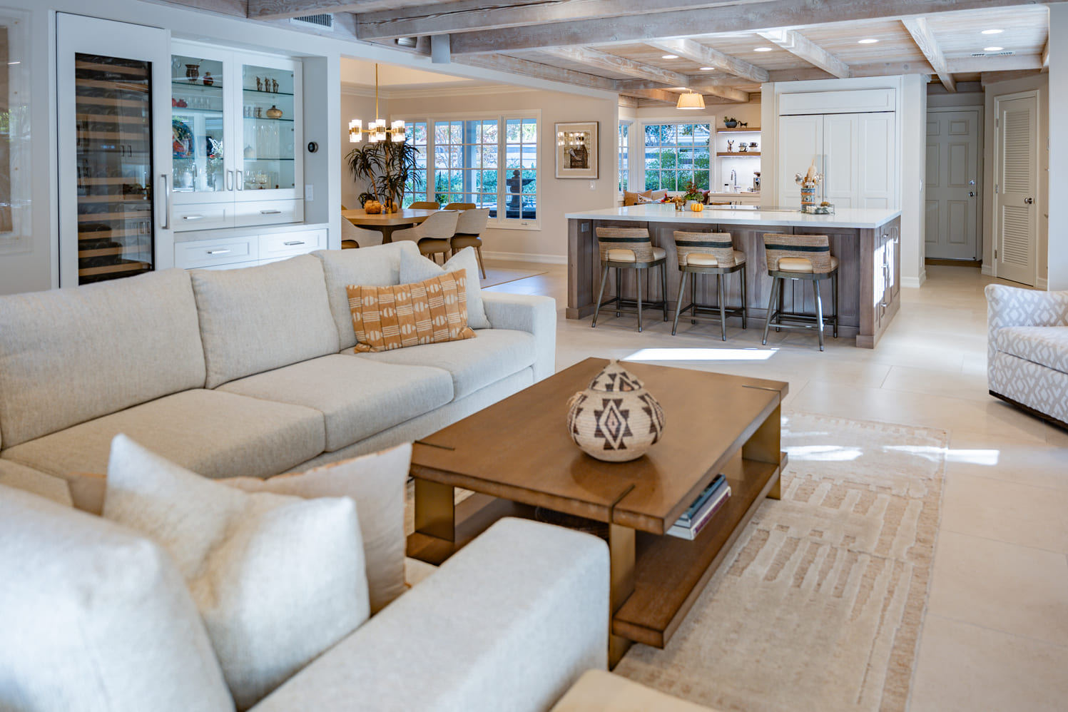 The focus on this furnishing project was to embody a serene palette of soft, neutral tones, that create an inviting and comfortable ambiance that encourages relaxation when gathering with friends and family. Each piece was thoughtfully designed to balance form and function, seamlessly integrating into modern living spaces. Vibrant art pieces adorn the walls, adding bursts of color and personality that enliven the room, while cozy accessories—such as plush throw pillows and textured blankets—infuse warmth and charm. This project celebrates the harmony between elegance and practicality, ensuring that each element not only enhances the aesthetic but also promotes an atmosphere ideal for both entertaining guests and unwinding after a long day.