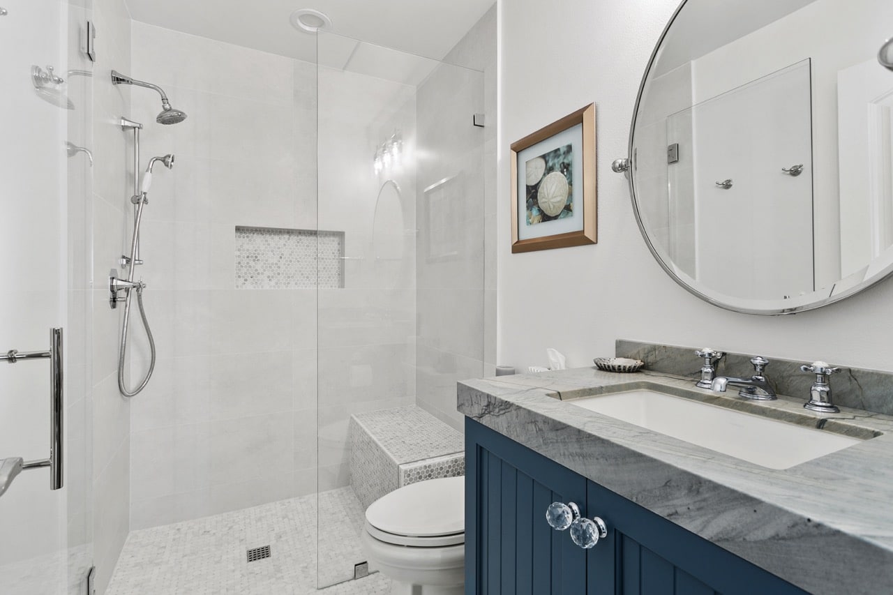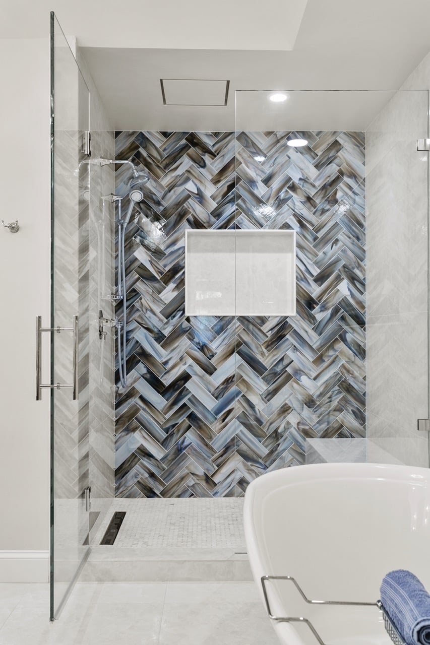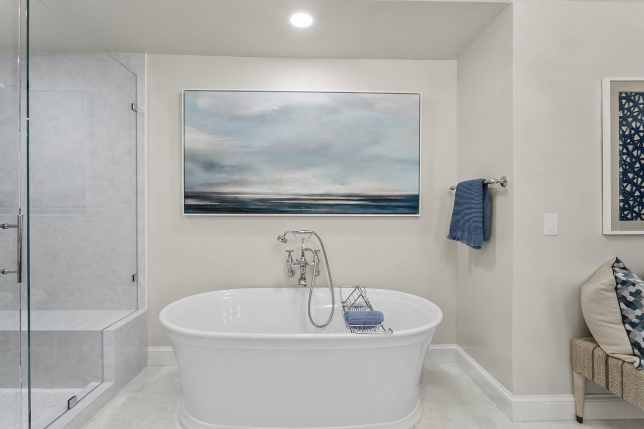 This residential remodel included a full transformation of the primary bathroom and a series of elevated aesthetic updates throughout the home. In the bathroom, we reimagined the space with custom tilework, modern fixtures, and a serene yet striking palette to create a spa-like retreat. Additional design enhancements were made in the living room, family room, and kitchenette area, blending comfort with style through updated finishes, curated furnishings, and thoughtful details that brought a fresh, cohesive feel to the home.